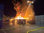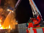 Durch die Feuerwehr wurde umgehend eine massive Brandbekämpfung mit mehreren Strahlrohren sowie über die Teleskopmastbühne eingeleitet. Im weiteren Verlauf wurde zur Brandbekämpfung zusätzlich Löschschaum eingesetzt.