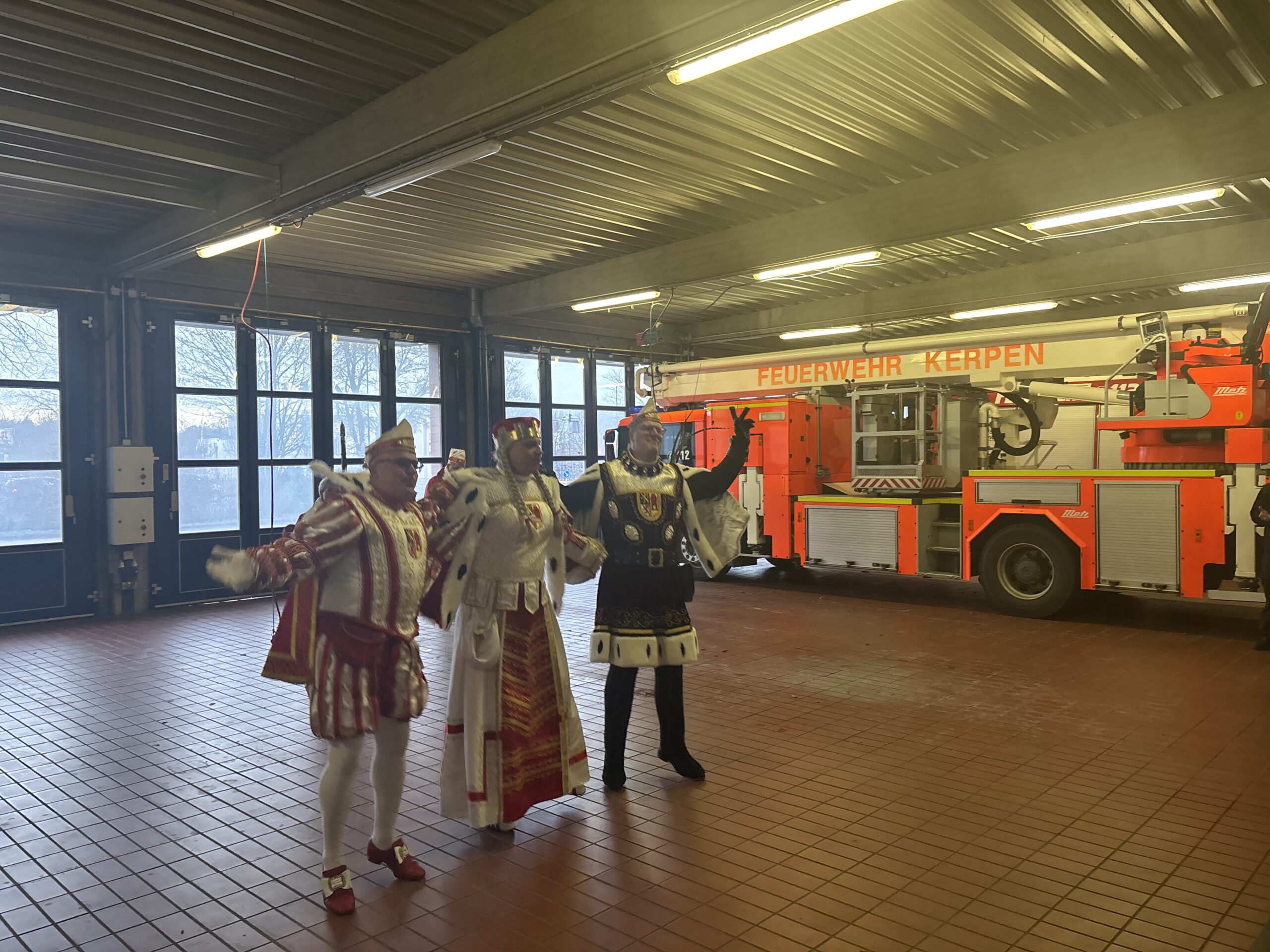 Der Besuch bei der Feuerwehr ist für das Dreigestirn dabei ein besonderes Anliegen, betonte das Kerpener Dreigestirn. Er steht für Wertschätzung und Anerkennung gegenüber den Einsatzkräften, die rund um die Uhr für die Sicherheit der Menschen in Kerpen im Einsatz sind – besonders natürlich auch während der Karnevalssession.