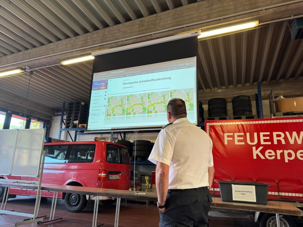 Als zusätzliches und sehr nützliches Werkzeug wurde das Schadstoffausbreitungsmodell (Notfall-Ausbreitungsrechnung, NAR) vorgestellt. Durch dieses Werkzeug ist es den Feuerwehren möglich, schnell und gezielt die Bevölkerung vor beispielsweise ausbreitenden Brandrauch zu warnen.