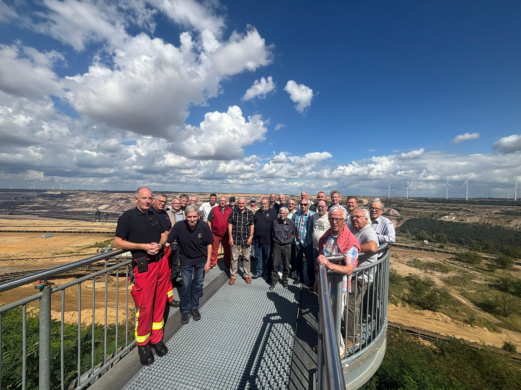 Im Anschluss ging es weiter in den Tagebau Garzweiler, wo die dort stationierten Feuerwachen besichtigt wurden und die Strukturen des Tagebaus an verschiedenen Stationen eindrucksvoll den Teilnehmenden nähergebracht wurde. Hier wurde deutlich, welch besondere Herausforderungen an den Brandschutz in einem Tagebau gestellt werden. Zum Ausklang des erlebnisreichen Tages kehrten die Teilnehmerinnen und Teilnehmer im Feuerwehrhaus Horrem ein, wo der Ausflug bei leckerem Essen und guter Kameradschaft einen geselligen Abschluss fand.