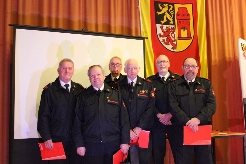 Weiterhin wurden vier Kameraden für 40 Jahre, vier Kameraden für 50 Jahre und drei Kameraden sogar für 60 Jahre treue Mitgliedschaft in der Feuerwehr Kerpen geehrt. Für diese jahrzehntelange Treue bedankte sich der Bürgermeister sehr herzlich.