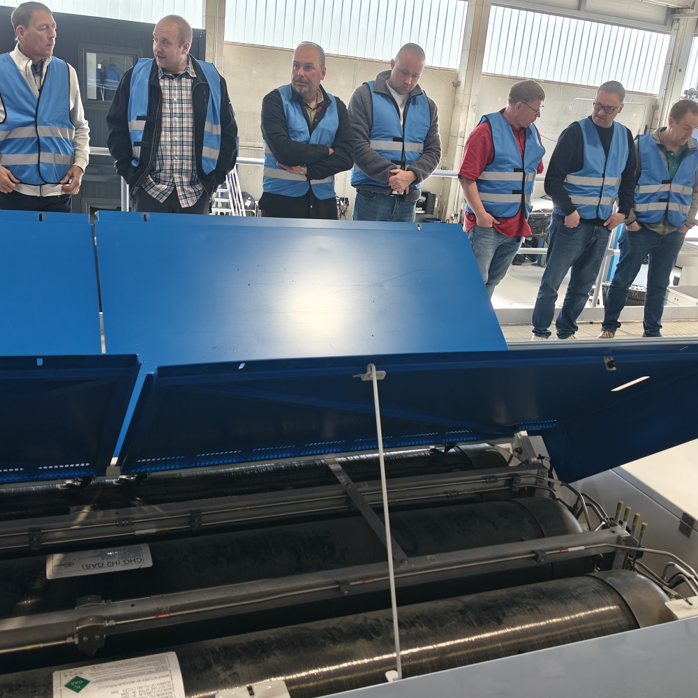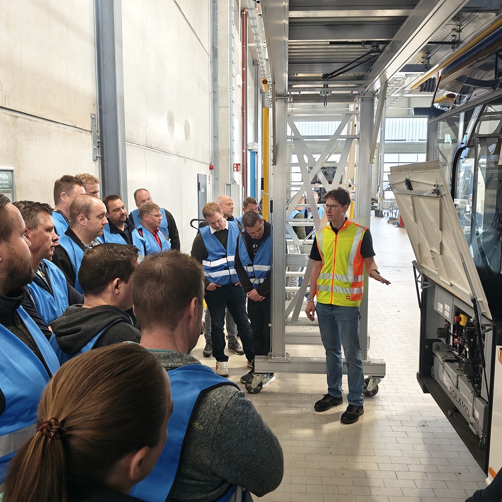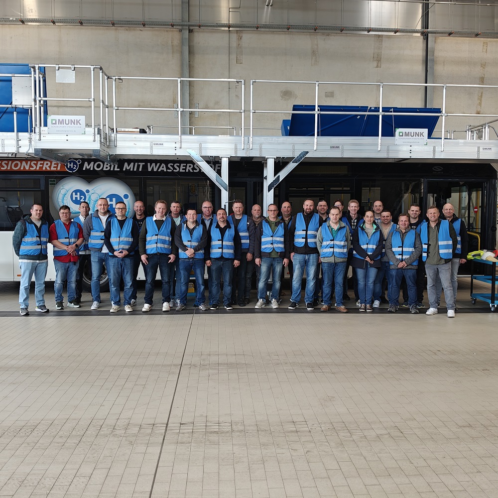 Bis zum Mittag waren wir zu Gast bei der Rhein-Erft-Verkehrsgesellschaft mbH (REVG) in Türnich. Dort wurde uns ein wasserstoffbetriebener Linienbus und die dazugehörige Tankstelle vorgestellt. Themen, die für uns im Einsatzfall zunehmend an Bedeutung gewinnen. Der direkte Austausch hat geholfen, mögliche Einsatzlagen besser einzuordnen und Abläufe besser zu schulen. Gleichzeitig haben wir die Zusammenarbeit mit der REVG weiter konkretisiert.