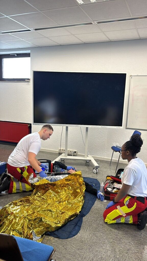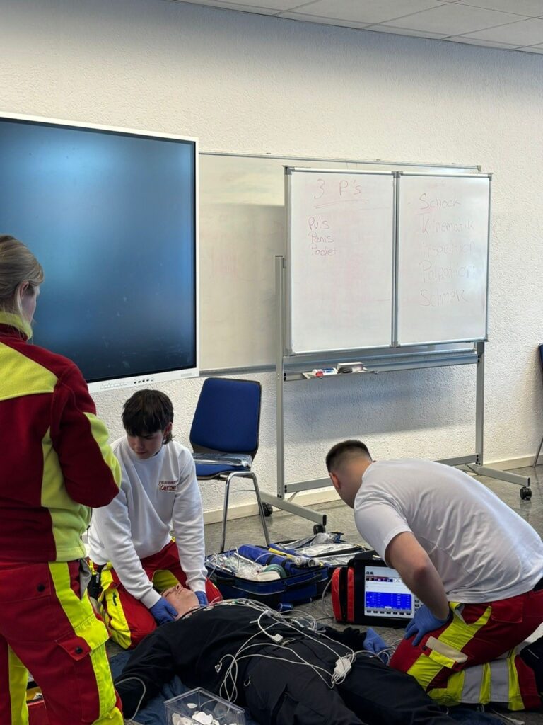 Nach einer kurzen Eingewöhnungsphase starteten die Auszubildenden des 1. Lehrjahres nun in ihr erstes Praxistraining auf der Feuer- und Lehrrettungswache Kerpen. Zwei intensive Tage lang ging es darum, rettungsdienstliche Abläufe sicher anzuwenden, Anamnesen strukturiert zu erheben und vor allem eines zu üben: klare und empathische Kommunikation mit Patientinnen und Patienten.