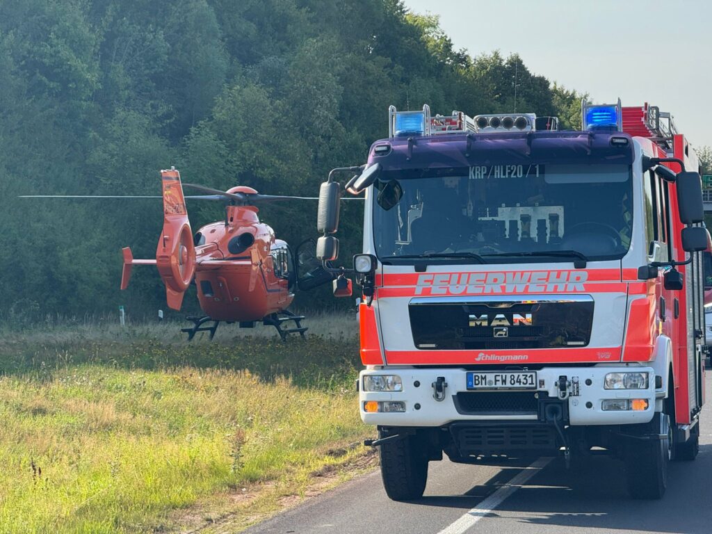 Die lebensgefährlich verletzte Person wurde mit dem Hubschrauber in eine Klinik geflogen. Eine weitere schwer verletzte Person wurde mit einem Rettungswagen ins Krankenhaus transportiert. Die drei übrigen Insassen konnten nach einer medizinischen Behandlung vor Ort verbleiben.