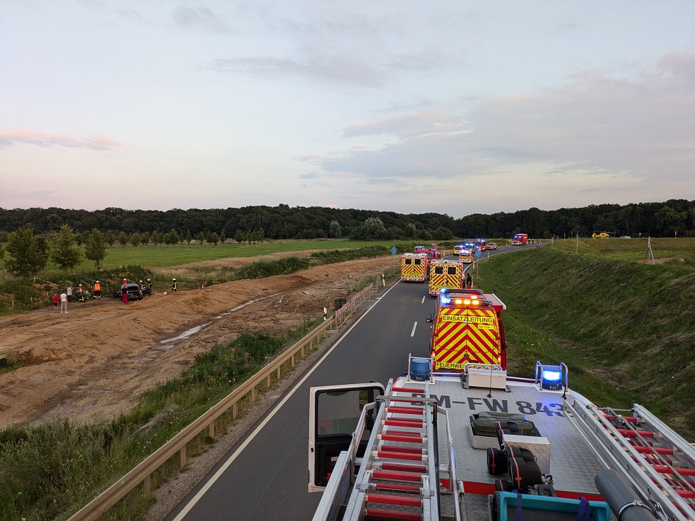 Die beiden Fahrzeuginsassen wurden dabei schwer verletzt, jedoch glücklicherweise nicht eingeklemmt. Durch die Einsatzkräfte der Feuerwehr wurde die Unfallstelle abgesichert und der Rettungsdienst bei der Versorgung der Patienten unterstützt. Zwei Notärzte versorgten die beiden Patienten gemeinsam mit den Besatzungen der Rettungswagen. Aufgrund der jeweiligen Verletzungsmuster wurden im Einsatzverlauf zwei Rettungshubschrauber angefordert, welche die Patienten in umliegende Unikliniken flogen.